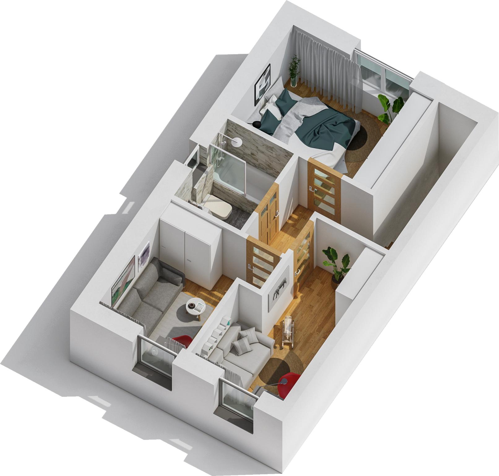 Niewielki metraż, lecz maksymalnie zagospodarowany, pozwala na dowolną aranżację piętra.